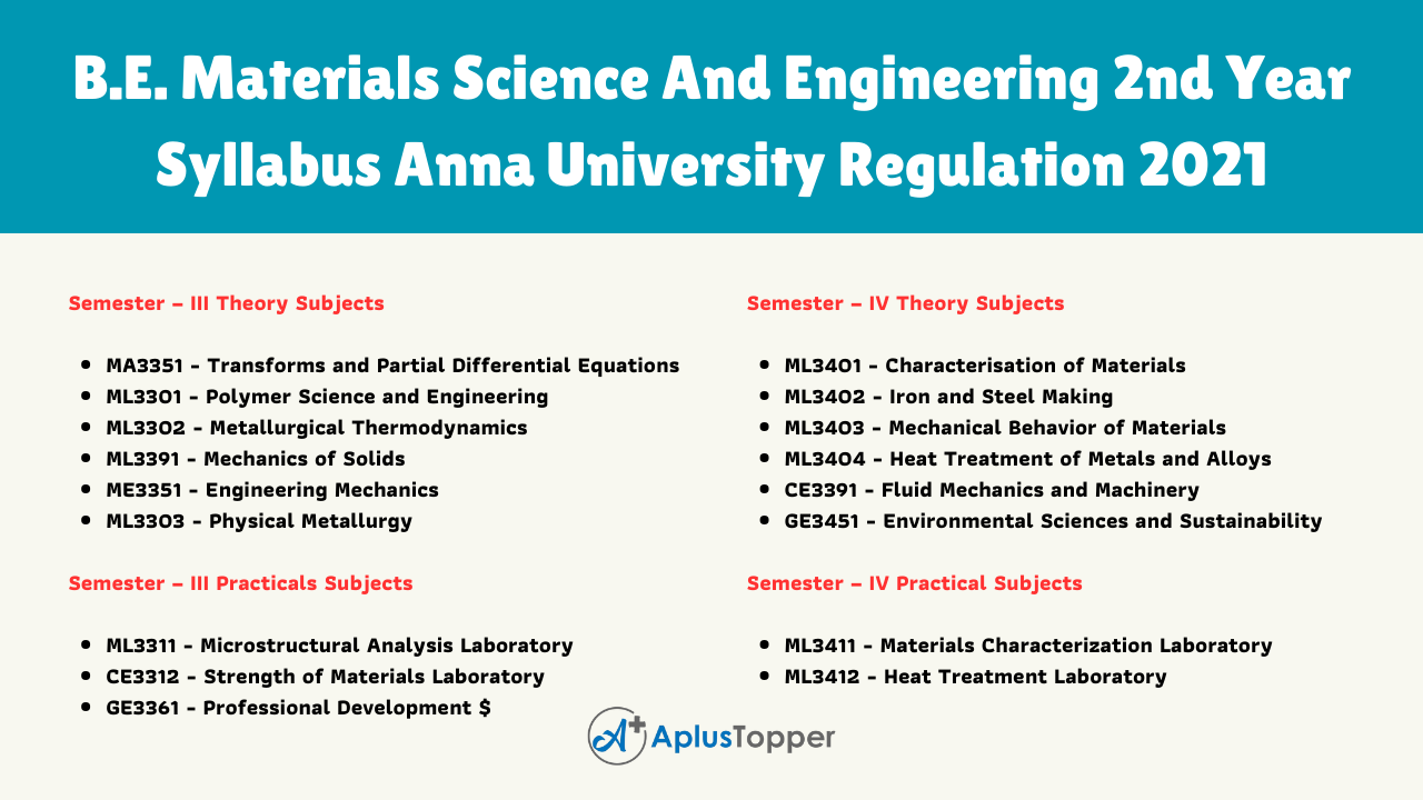 B.E. Materials Science And Engineering 3rd Year Syllabus Anna University Regulation 2021