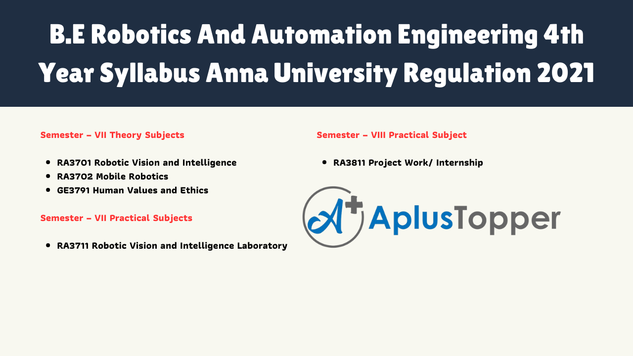 B.E Robotics And Automation Engineering 4th Year Syllabus Anna University Regulation 2021