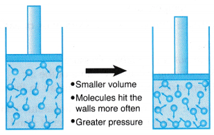 (d) The increase in the rate of collision results in an increase in the pressure exerted by the gas. - Boyle’s law states that for a fixed mass of gas, the pressure of the gas is inversely proportional to its volume when the temperature is kept constant.