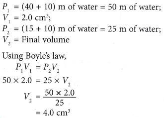 Example 2. A deep-sea diver breathed out a bubble of air with a volume of 2.0 cm3 at a depth of 40 m. What will be the volume of the bubble when it is 15 m below the surface of the sea?