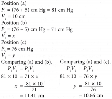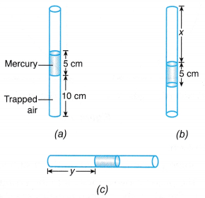 Example 3. Figure shows a thin glass tube with air trapped inside it in three different positions.