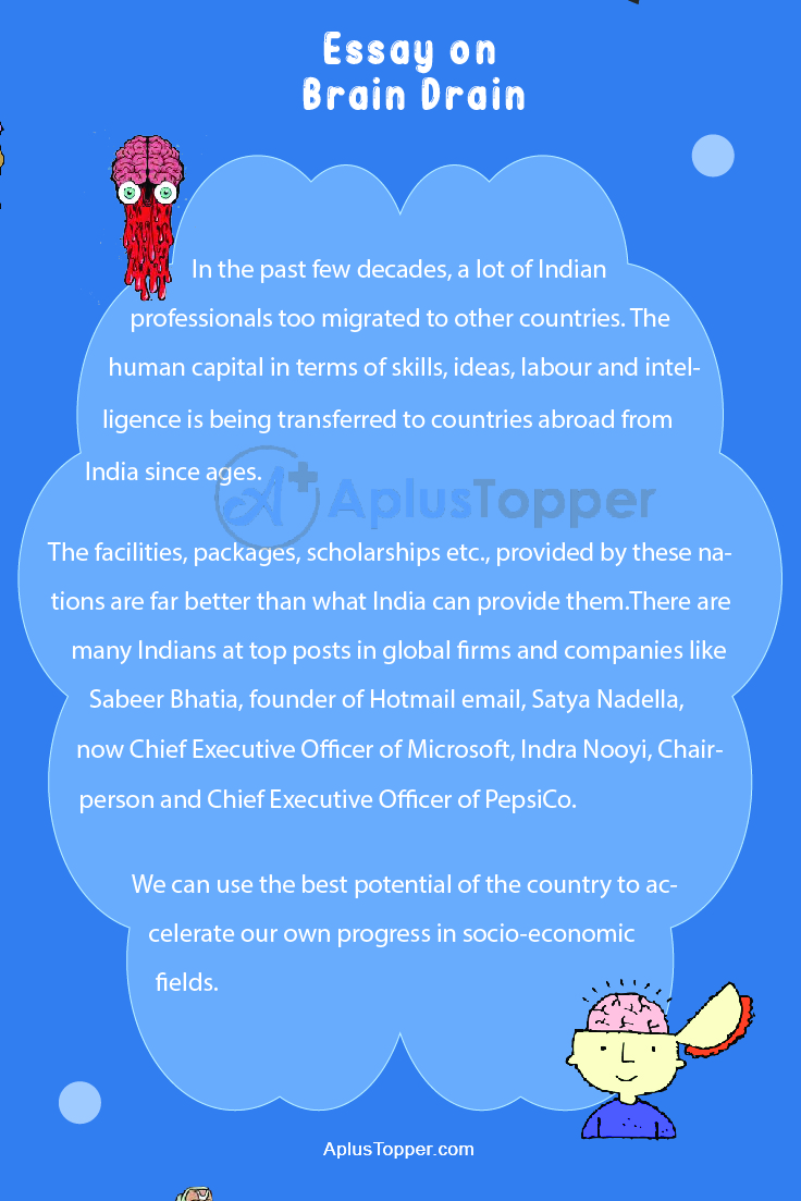 Given below are two essays in English for students and children about the topic of ‘Brain Drain’ in both long and short form. The first essay is a long essay on Brain Drain of 400-500 words. This long essay about Brain Drain is suitable for students of class 7, 8, 9 and 10, and also for competitive exam aspirants. The second essay is a short essay on Brain Drain of 150-200 words. These are suitable for students and children in class 6 and below.