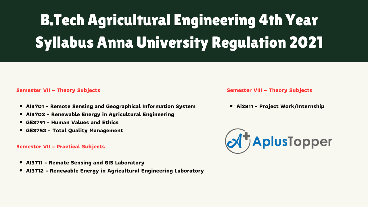 B.Tech Agricultural Engineering 4th Year Syllabus Anna University Regulation 2021