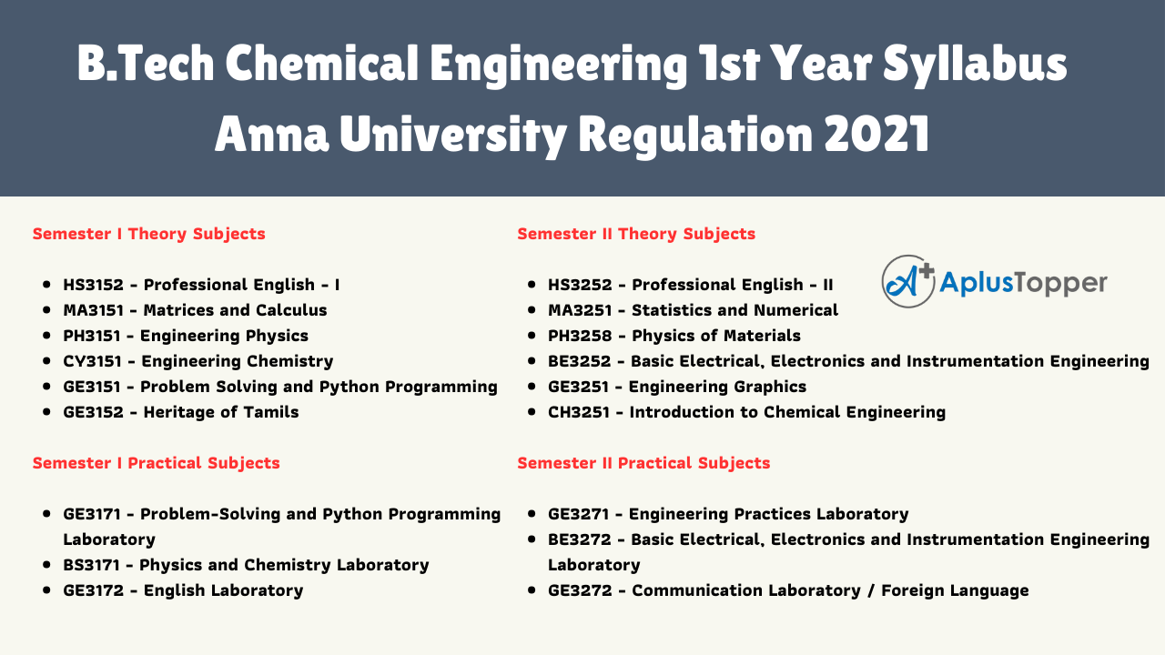 B.Tech Chemical Engineering 1st Year Syllabus Anna University Regulation 2021