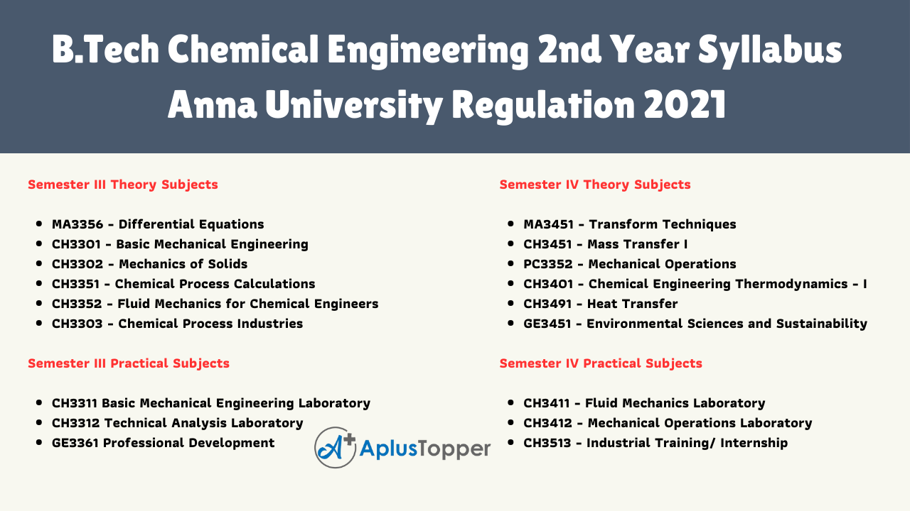 B.Tech Chemical Engineering 2nd Year Syllabus Anna University Regulation 2021