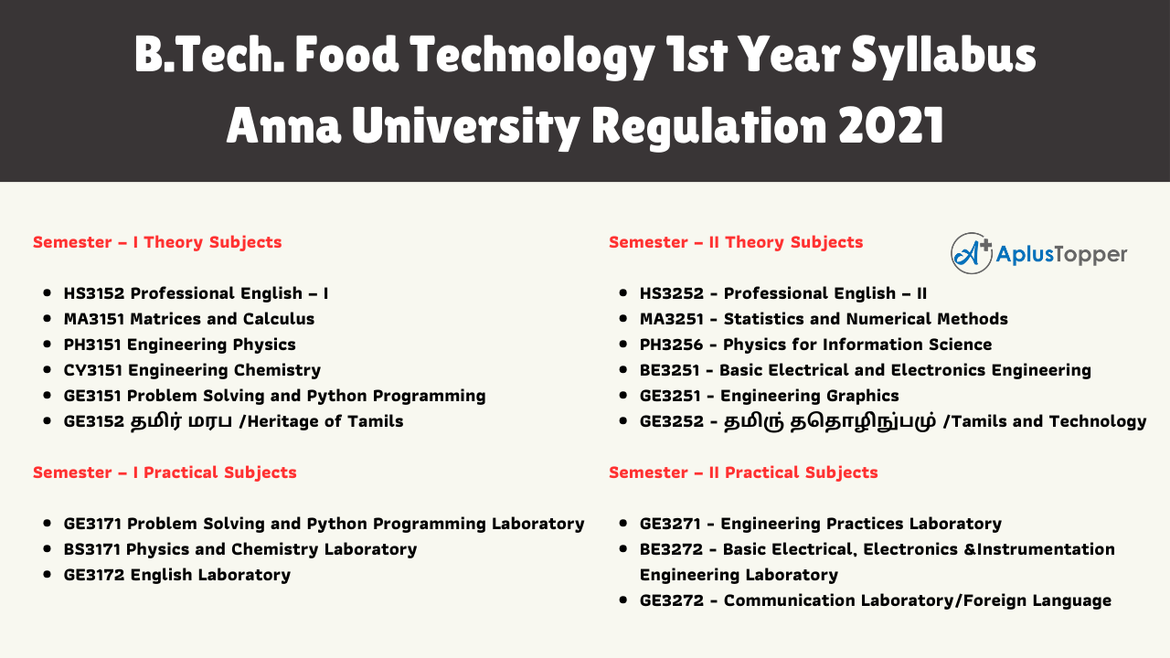 B.Tech. Food Technology 1st Year Syllabus Anna University Regulation 2021