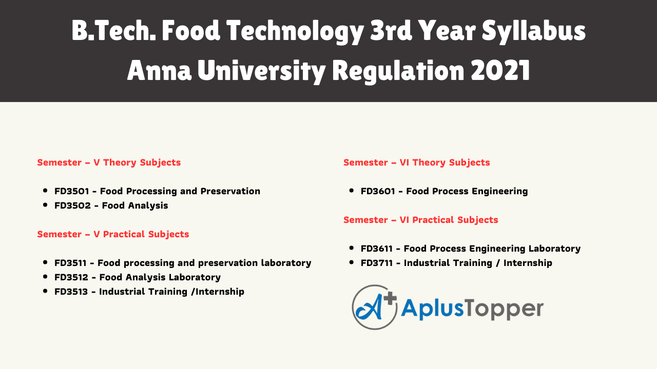 B.Tech. Food Technology 3rd Year Syllabus Anna University Regulation 2021
