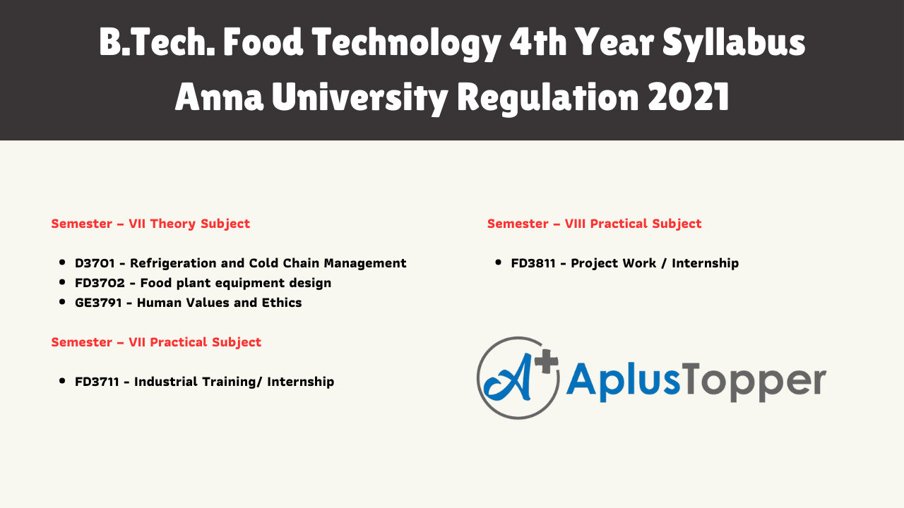 B.Tech. Food Technology 4th Year Syllabus Anna University Regulation 2021