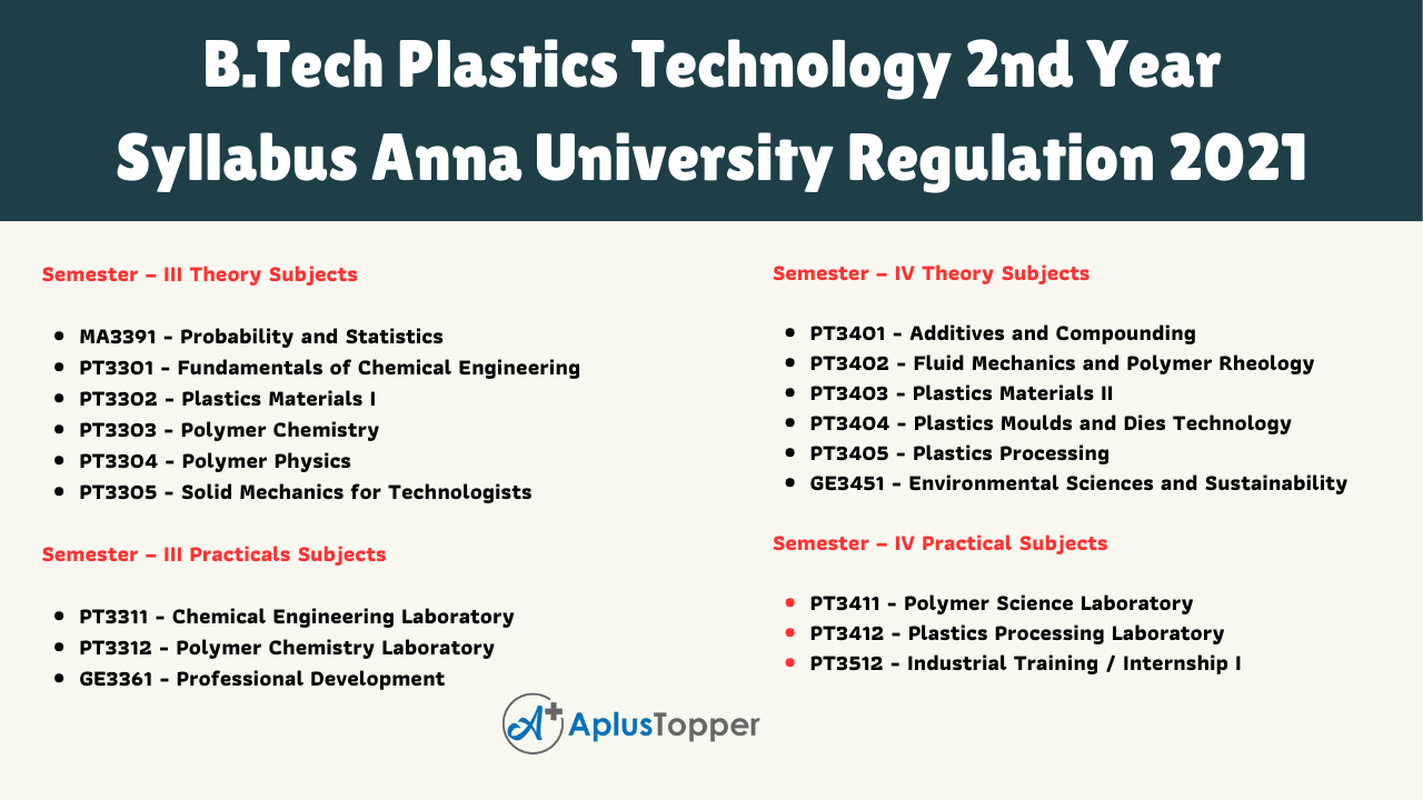 B.Tech Plastics Technology 2nd Year Syllabus Anna University Regulation 2021