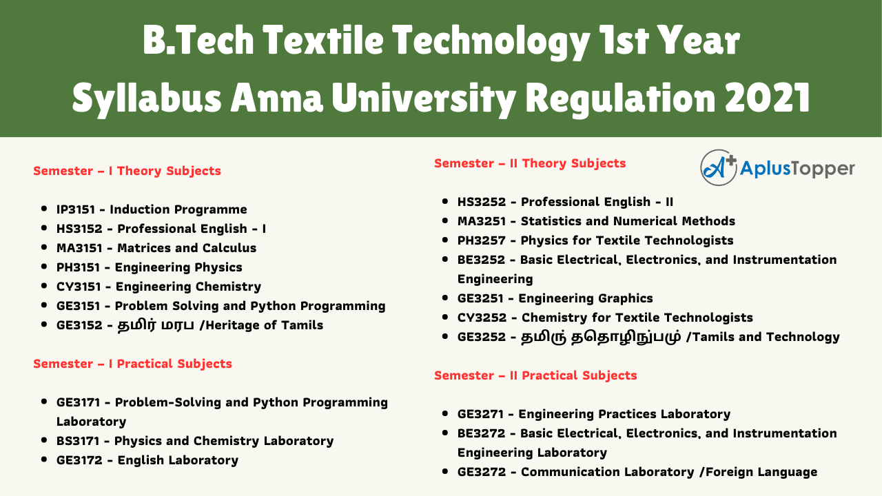 B.Tech Textile Technology 1st Year Syllabus Anna University Regulation 2021