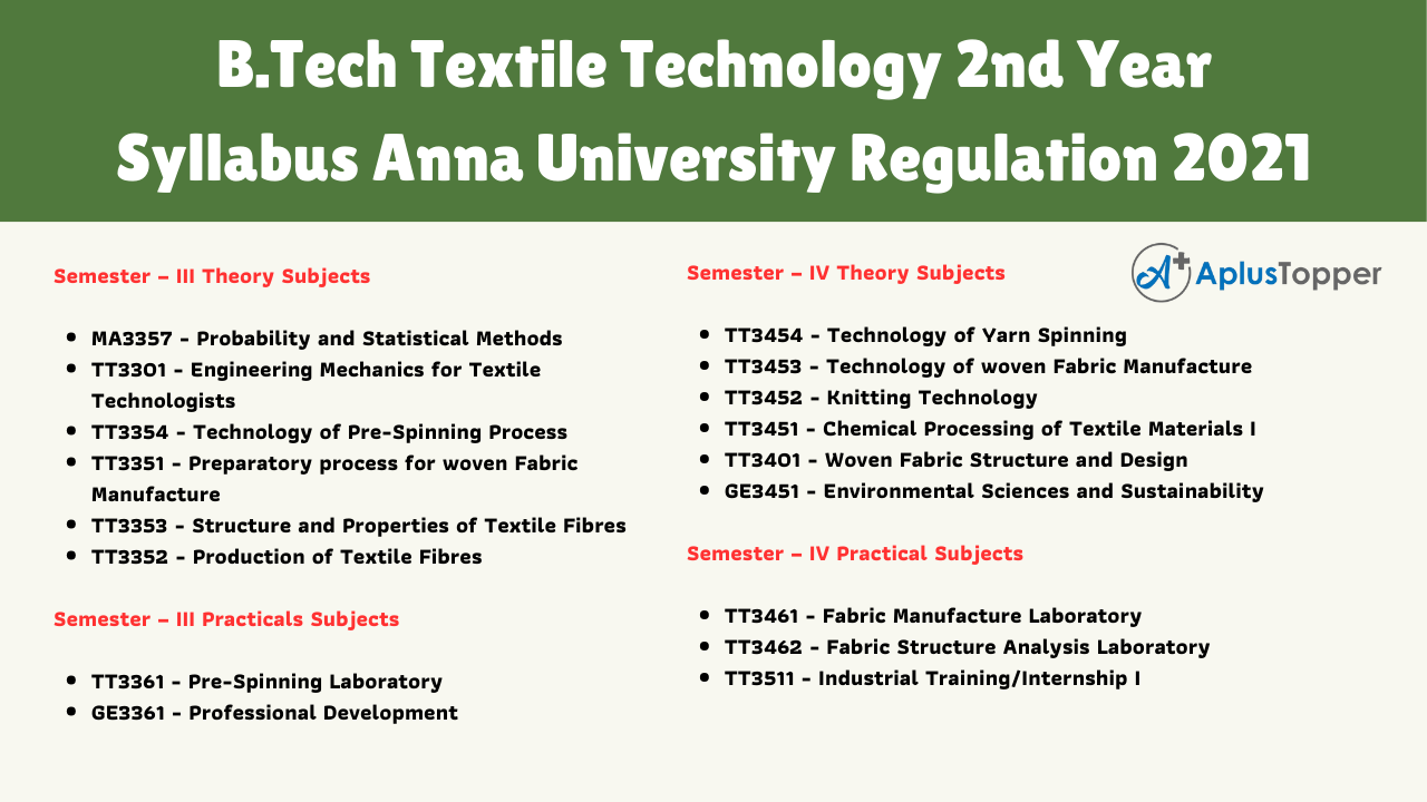 B.Tech Textile Technology 2nd Year Syllabus Anna University Regulation 2021