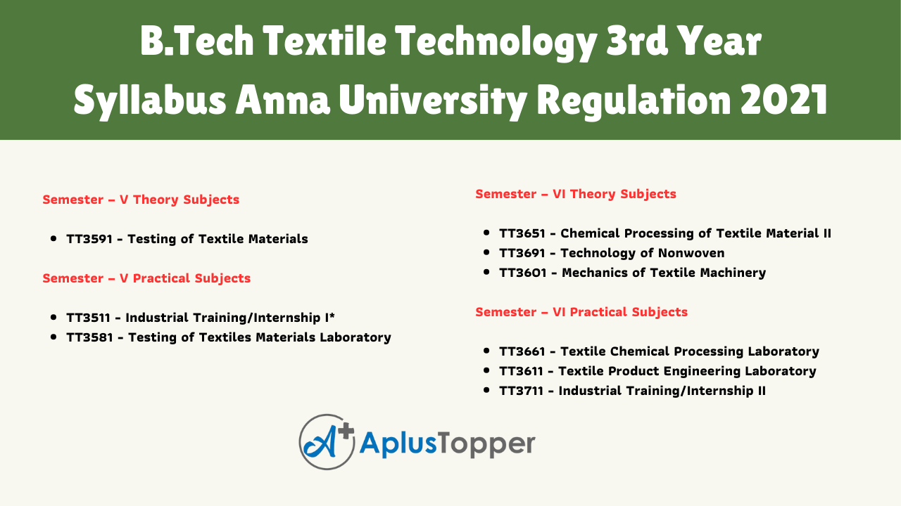 B.Tech Textile Technology 3rd Year Syllabus Anna University Regulation 2021