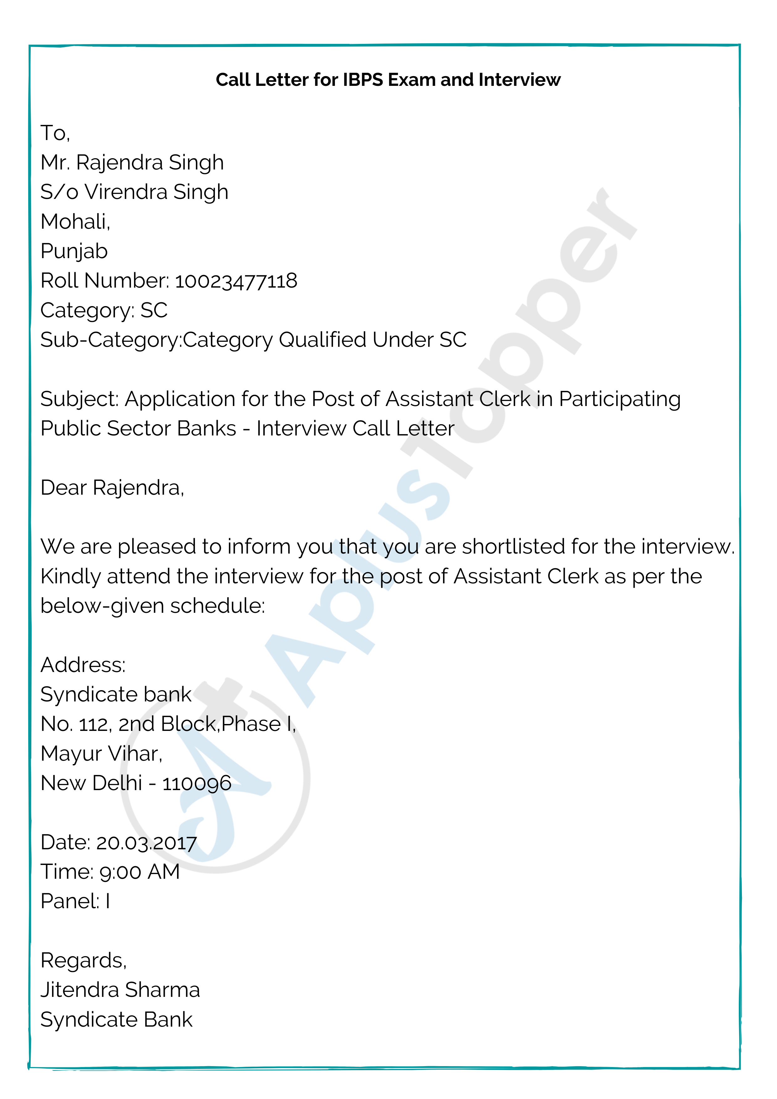 Call Letter for IBPS Exam and Interview