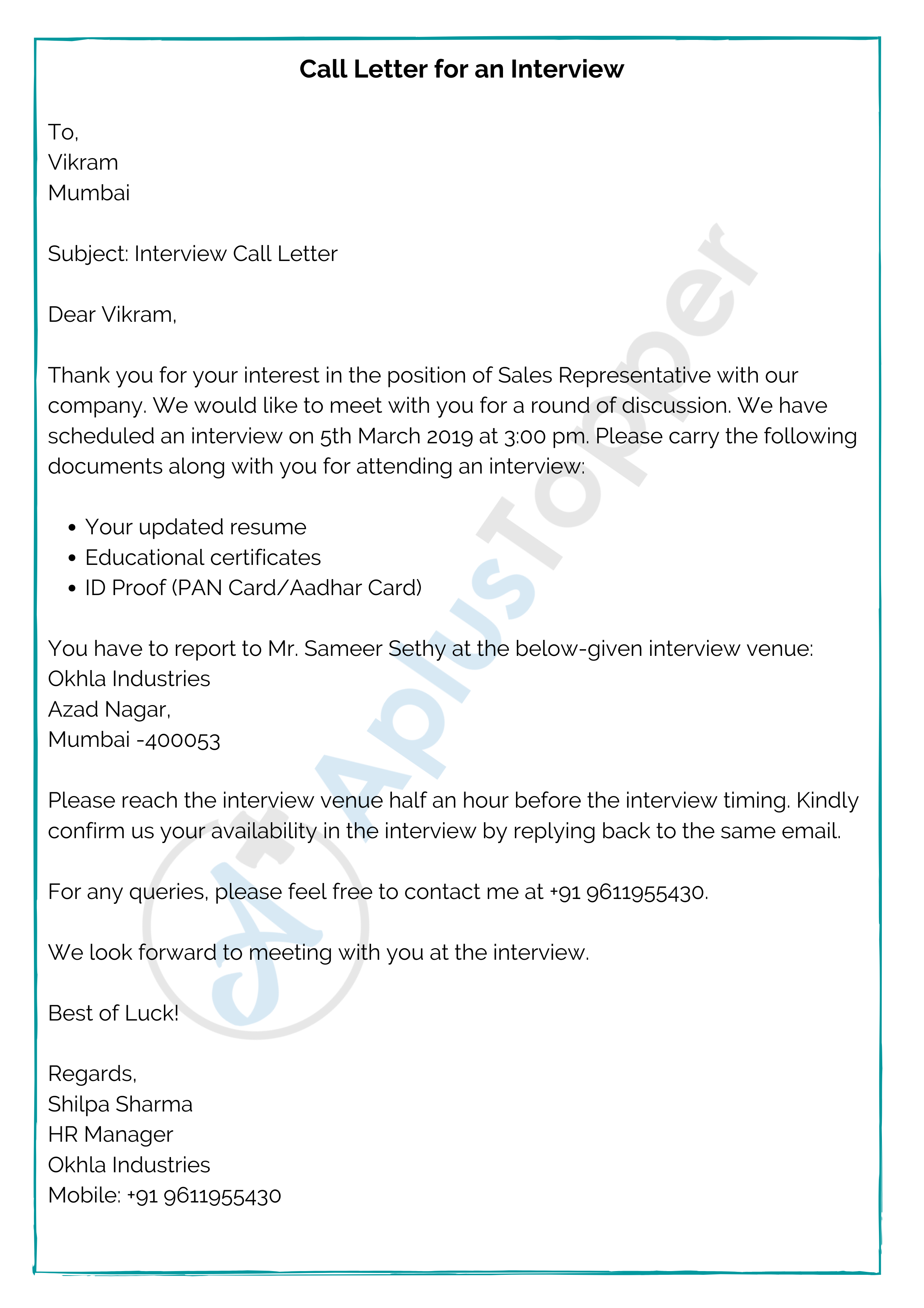 Call Letter for an Interview
