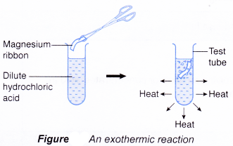 (d) thermometer. - When a piece of magnesium ribbon is added to some dilute hydrochloric acid in a test tube, a reaction occurs and the test tube becomes hot. This shows that heat has been given out. Thus, the reaction is exothermic.