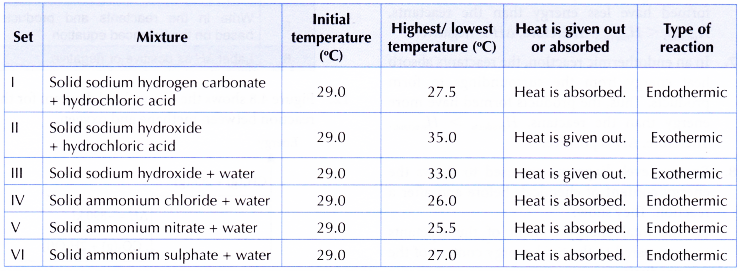 (b) Endothermic reaction - The changes of energy in some chemical reactions are shown in Table.