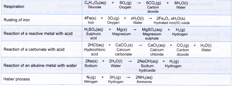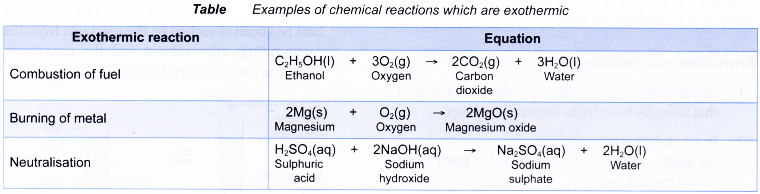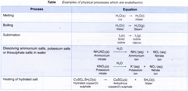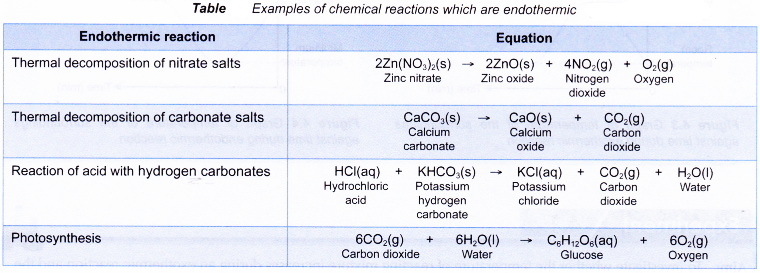 Some examples of chemical reactions which are endothermic are shown in Table.