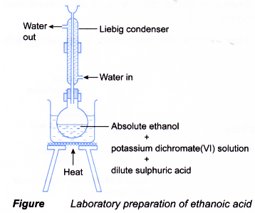 - This is carried out by refluxing ethanol with an oxidising agent such as acidified potassium dichromate(VI) solution or acidified potassium manganate(VII) solution.