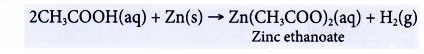 (b) The following equation shows the reaction between zinc and ethanoic acid.