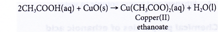 - Ethanoic acid dissolves copper(II) oxide to produce copper(II) ethanoate and water.