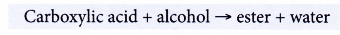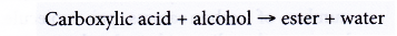 (a) Carboxylic acid reacts with alcohol to form an ester and water. This reaction produces a sweet-smelling compound called an ester. The reaction process is called esterification.