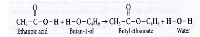 (b) When a mixture of ethanoic acid and butan-l-ol with a few drops of concentrated sulphuric acid is heated, an ester called butyl ethanoate is formed.