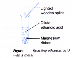 (a) Dilute ethanoic acid reacts with reactive metals to produce a salt and hydrogen. Copper and metals below it in the reactivity series cannot react with ethanoic acid.