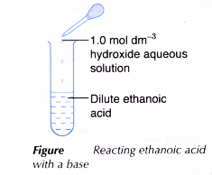 - About 2 cm3 of 1.0 mol dm-3 sodium hydroxide solution is added to the acid and the mixture is shaken.