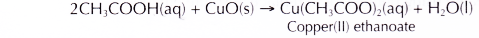 (b) Black copper(II) oxide power dissolves in hot dilute ethanoic acid to form a blue solution of copper(II) ethanoate and water.