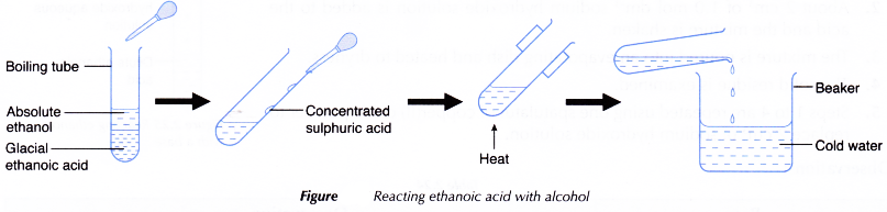 - A dropper is used to add about 1 cm3 of concentrated sulphuric acid to the mixture. The boiling tube is shaken well.
