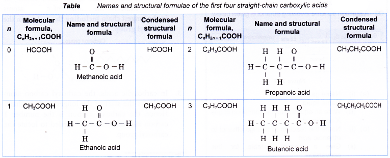 - The general formula of the carboxylic acid family is CnH2n+1COOH, where n = 0, 1, 2, 3,…