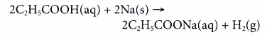 Propanoic acid reacts with sodium to form sodium propanoate and hydrogen.