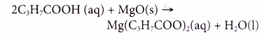 Butanoic acid reacts with magnesium oxide to form magnesium butanoate and water.