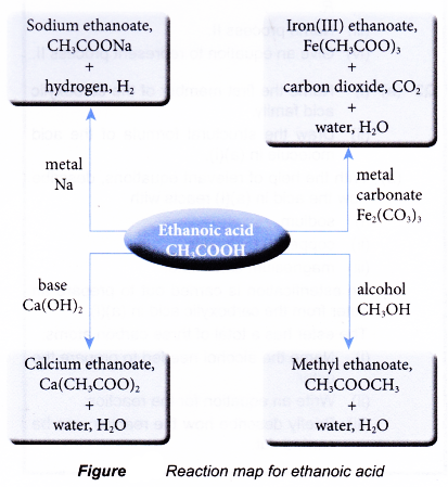 - The chemical reactions of the carboxylic acids can be understood by studying the reactions of ethanoic acid.