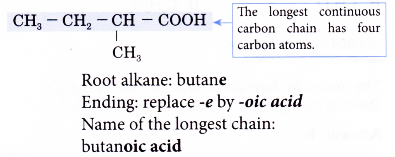 Step 2: Name this longest chain by replacing the ending -e of the corresponding alkane with -oic acid.