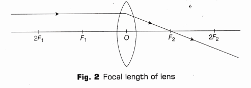 The distance between the optical centre O of the convex lens and the focus F1 or F2 is its focal length (see Fig. 2).