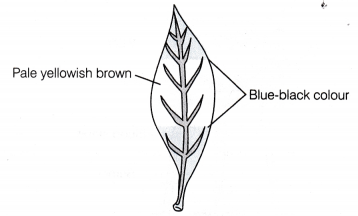 - The portion of the leaf that was covered with black strips has no appearance of blue colour, it turns to a pale yellowish brown.
