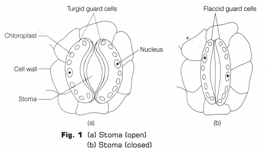 These guard cells have a thin outer and thick inner walls and they regulate the opening and closing of the stomatal pores, i.e. when guard cells are turgid, the stomata will be open [Fig.1(a)] and when guard cells become flaccid, the stomata will close [Fig.1(b)].