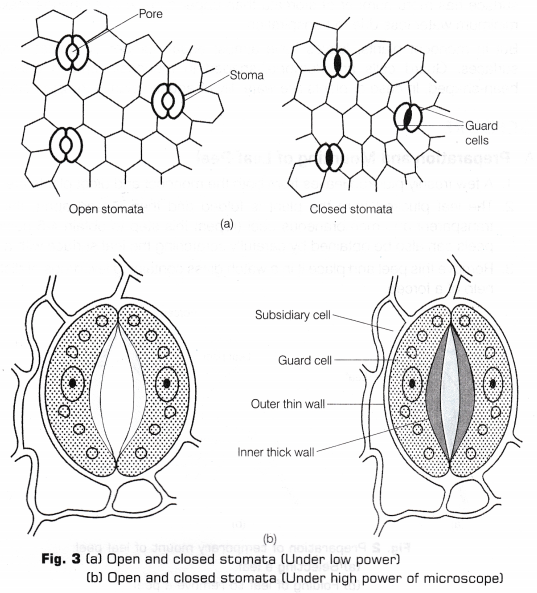 In the leaves of both the rnonocot and dicot plants, very small or miniature openings called stomata were present surrounded by guard cells on the either sides of it.