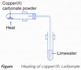 - Copper(II) carbonate is heated and the gas produced is passed through limewater.