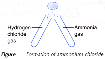 | B | Thick white fumes are produced at the mouth of the test tubes. | The white fumes are solid ammonium chloride. |
