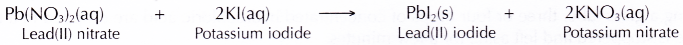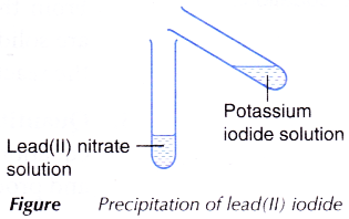 - 2 cm3 of potassium iodide solution is added to 2 cm3 of lead(II) nitrate solution as shown in Figure.