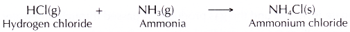 - When the hydrogen chloride gas and ammonia gas are brought together, they react to form fine white solids of ammonium chloride. These are seen as thick white fumes.