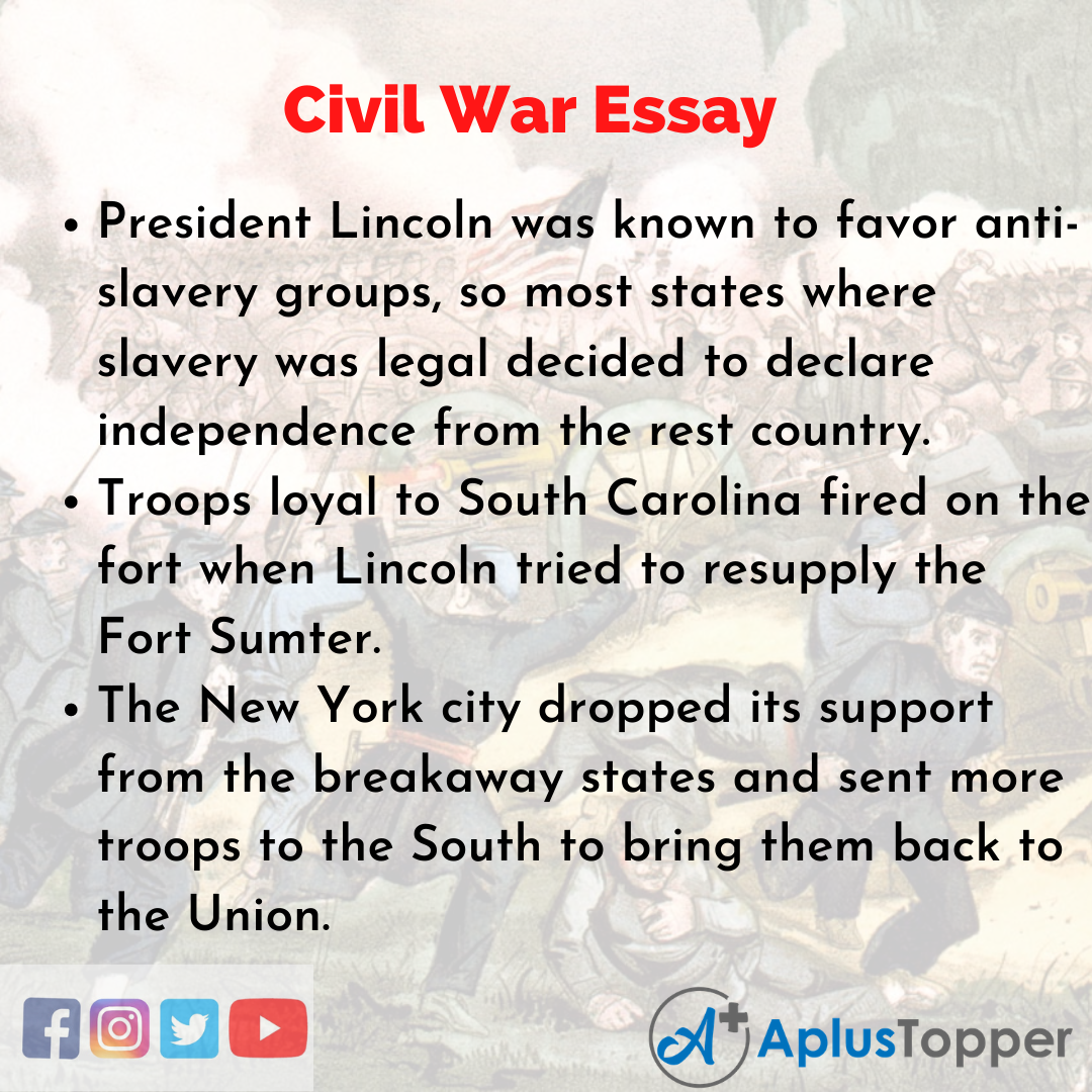Short Essay on Civil War is usually given to classes 1, 2, 3, 4, 5, and 6.