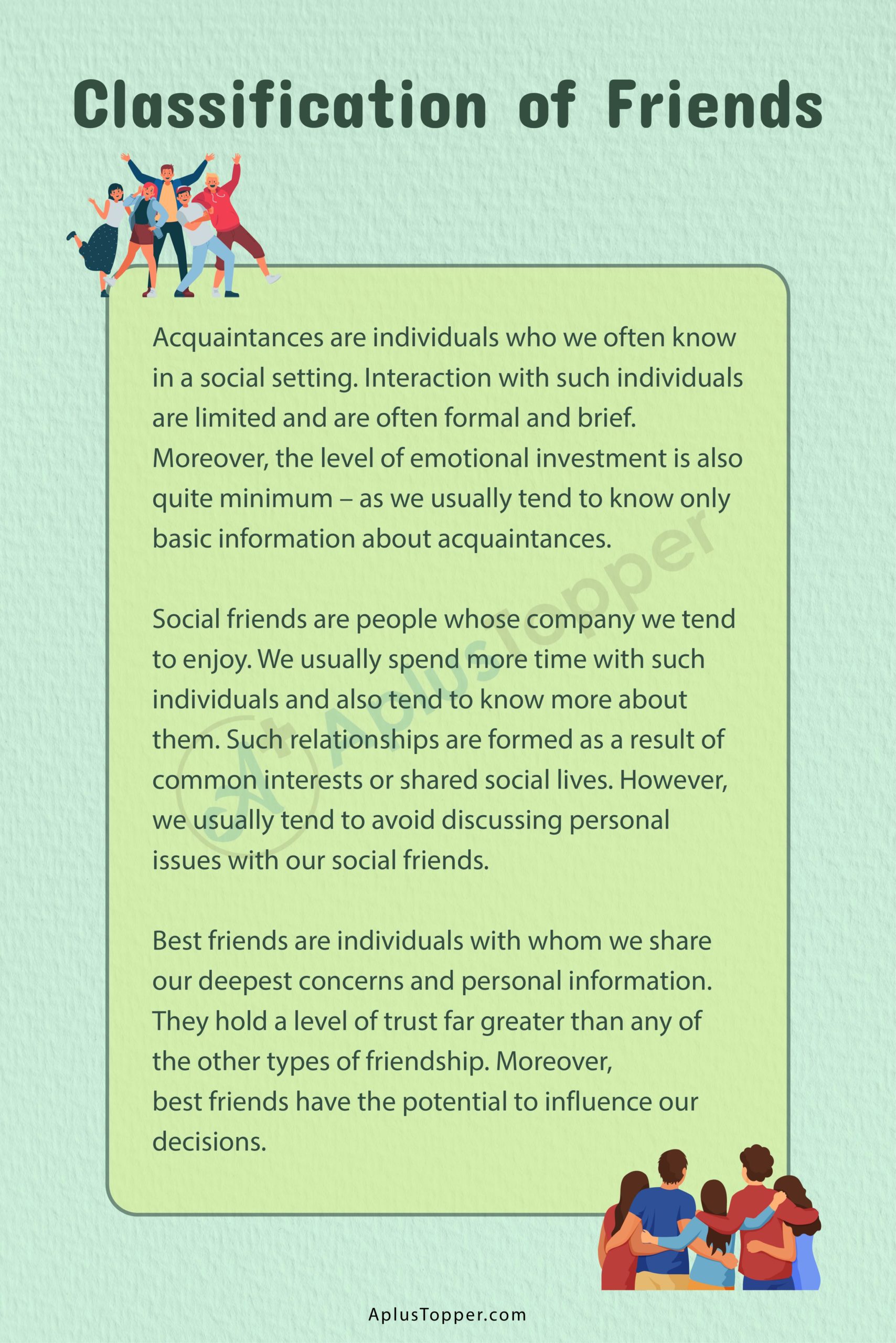 In this article, we shall explore essays about friends, friend circles, and also its classification. Moreover, we can also explore important writing guidelines and other crucial aspects of writing an essay.