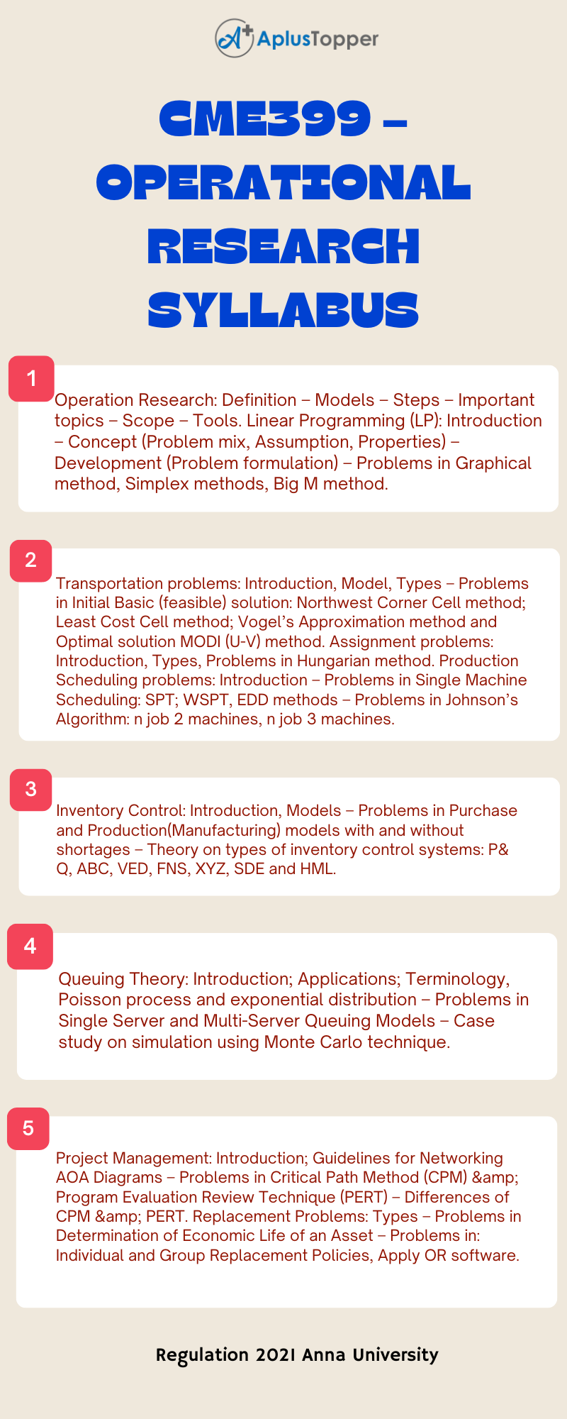 Operational Research is from Anna University conducting B.E Mechanical Engineering Sandwich containing semester V examination subject. In this article, we are glad to provide the syllabus of the Operational Research.