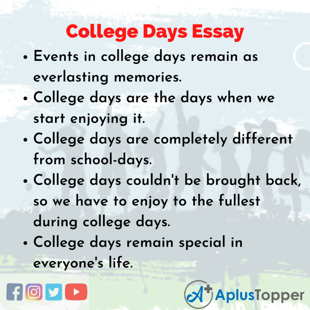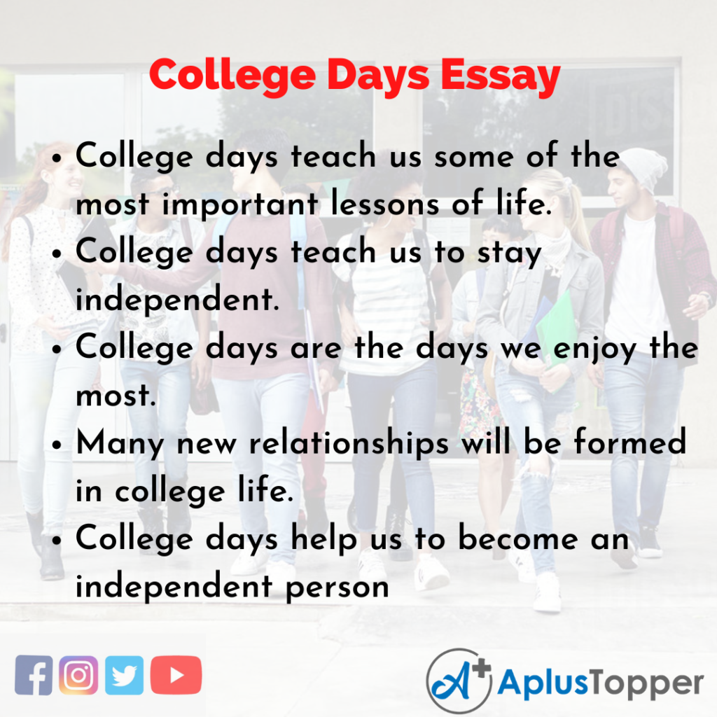 College Days Essay: College life is thought joined of the foremost unforgettable years of one’s life. It’s entirely totally different from school life. It involves various challenges. College days create an impact in our life.