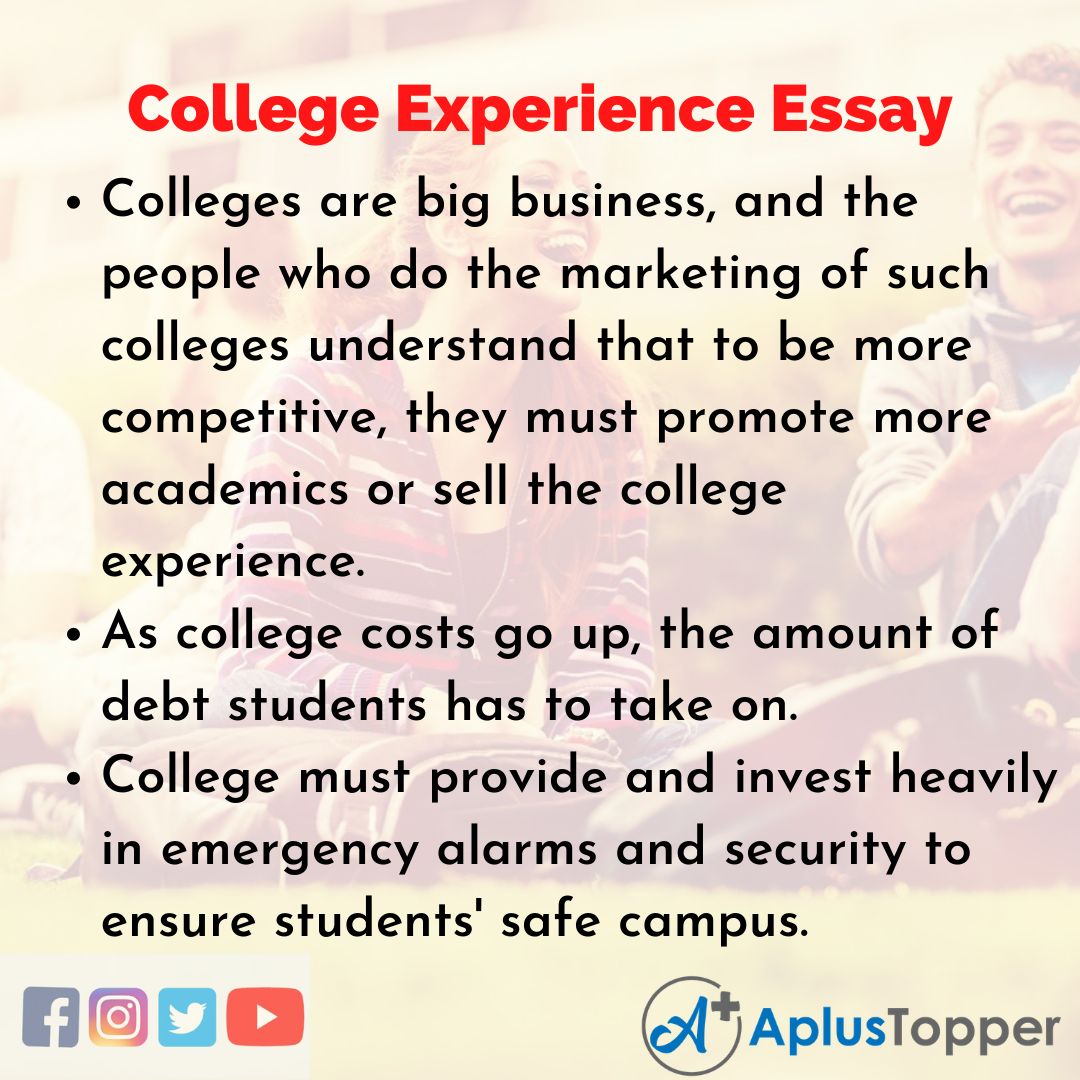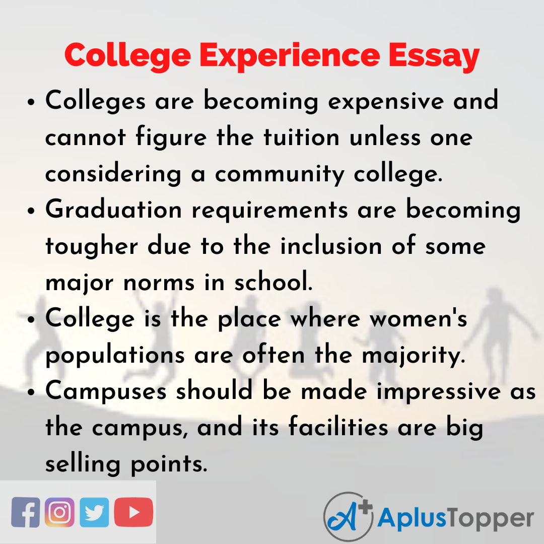 College Experience Essay: College is the place that allows students to dive deep into the ocean of new beginnings and possibilities. The college phase is one of the most interesting stages in life that gives you an opportunity to explore. The teenage years’ end and the golden period in college create a strong foundation of knowledge.