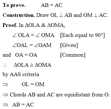 Solution: Given. A circle with centre O. Chords AB