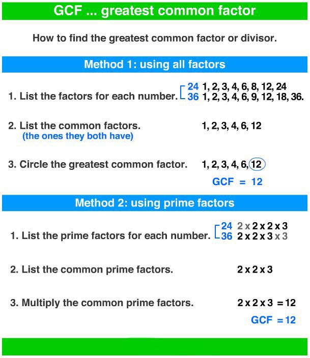 The greatest common factor of two (or more) integers is the largest integer that is a factor of both (or all) numbers.